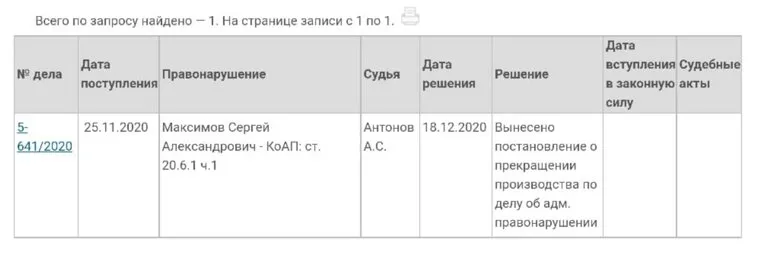 Решение судья принял 18 декабря. «Вынесено постановление о прекращении производства по делу об административном правонарушении (ст. 20.6.1 ч.1 КоАП РФ). Судья Антонов А.С.», — говорится в сообщении.