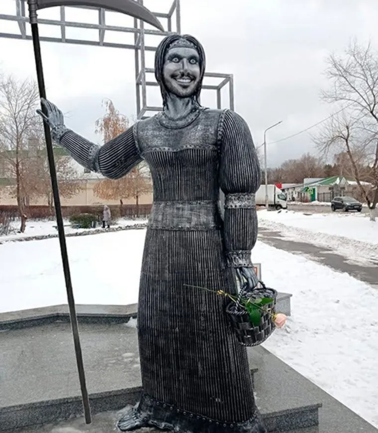 Памятник Аленке, о котором идет речь, стал подарком селу Новая Аленовка на 250-летие. Согласно городским легендам, 250 лет назад героиня в поисках места для переселения основала этот населенный пункт. Однако скульптура, по мнению местных жителей, вышла, мягко говоря, неудачной. Многие сравнили ее суровое лицо и неестественное телосложение с персонажами фильмов ужасов.