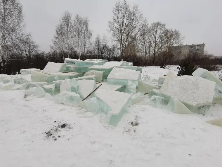Заготовки для строительства праздничных городков превратили в груду битого льда