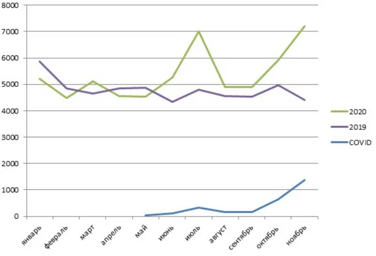 Число смертей в ноябре резко выросло. В том числе — от коронавируса