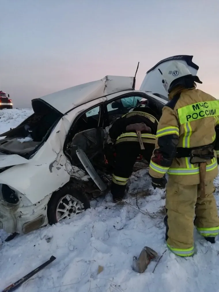 На фото, опубликованном пресс-службой регионального МЧС, запечатлен легковой автомобиль, вылетевший на обочину. Спасатели эвакуировали пострадавших.