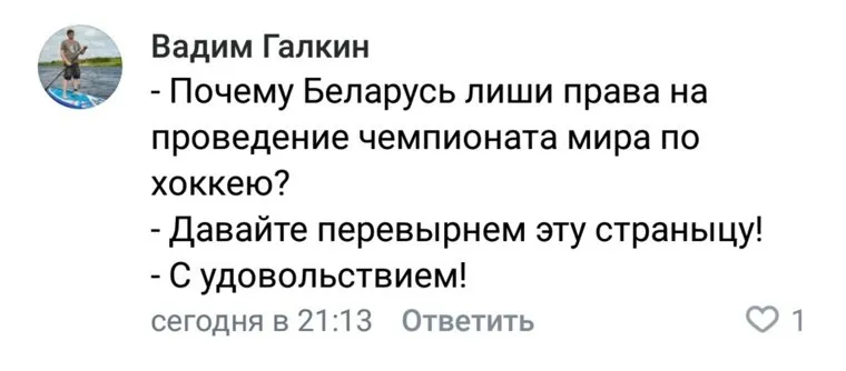 Международная федерация хоккея лишила Белоруссию права на проведение чемпионата мира по хоккею 2021 года. Пользователи социальных сетей искренне радуются такому повороту событий. Одни предрекают, что вместо всемирного чемпионата в хоккей будут играть только команды российского и белорусского президента, другие предвкушают гнев президента Белоруссии Александра Лукашенко.