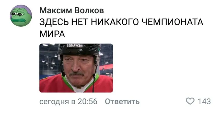 Максим Волков иронизирует и использует отсылки. Пользователь прикрепил к комментарию фотографию с интервью Лукашенко, в котором он сообщает, что коронавируса не существует