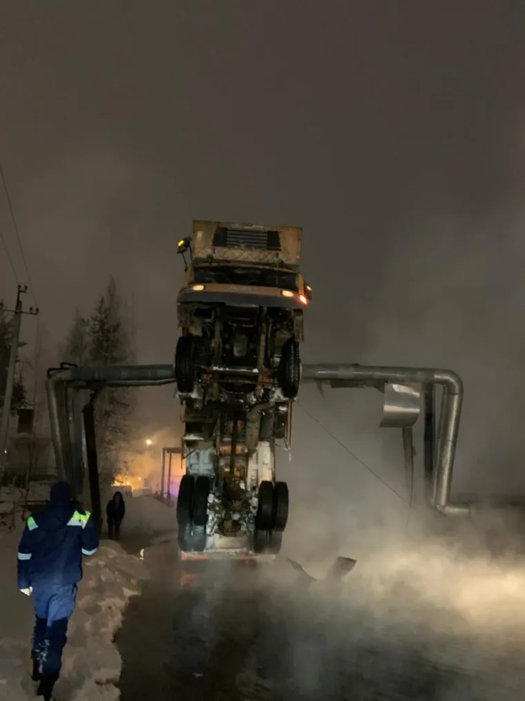 В ХМАО самосвал сломал трубу теплоснабжения