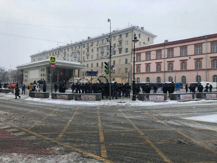 11:18 В Красноярске несколько десятков человек с плакатами вышли на площадь Мира, которая перегорожена снежным забором и автобусами, в которых сидят полицейские, пишет «Московский комсомолец», 23 января на акцию протеста в городе вышли порядка тысячи человек. По данным издания, автобусы не останавливаются на остановке «Театр оперы и балета», где проходит несогласованный митинг.