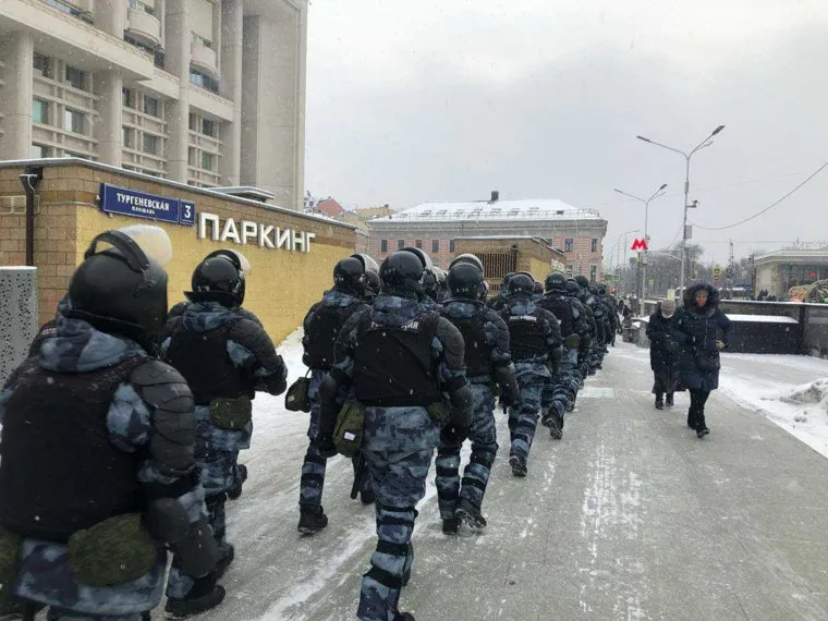 17:15 Протестующие начали бросать снежки в силовиков возле СИЗО «Матросская тишина», где содержится Алексей Навальный.