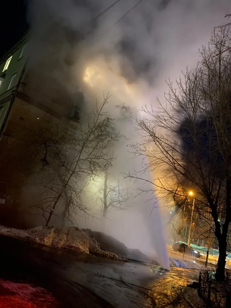 В Челябинске фонтан кипятка ударил в окна жилого дома. Фото, видео