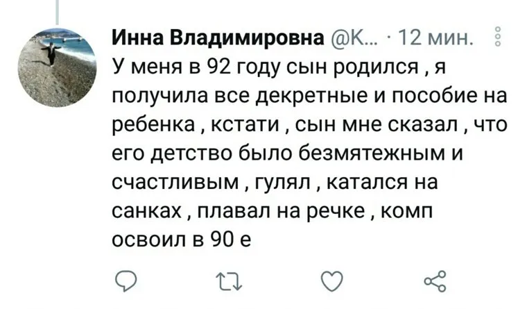 - Ася16 февраля 2021 00:26Пенсии в 90 давали, а зарплаты, работала в больнице, по несколько месяцев задерживали, жили на пенсию дедушки и бабушки, овощи с сада, и с земли, которую давали маме на заводе под посев картошки и т.д. Могли (когда деньги получали) кварплату платить, никаких пений не была, и не была она такой грабительской.