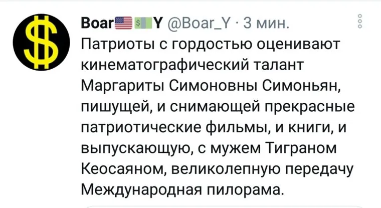 Ранее Маргарита Симоньян защитила пенсионную систему в России. «Мы с дрожью вспоминаем, как мы жили в 90-х. Их [пенсии] вообще не платили, про это вы забыли?» — задалась вопросом журналистка. Она согласилась с тем, что пенсии в России маленькие, но верит в их скорый рост и быстрое развитие страны после многочисленных потрясений.