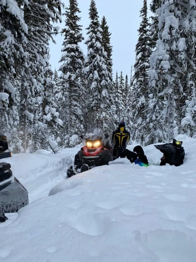 Один из снегоходов так сильно увяз в снегу, чтоб его оставили и забрали лишь на обратном пути