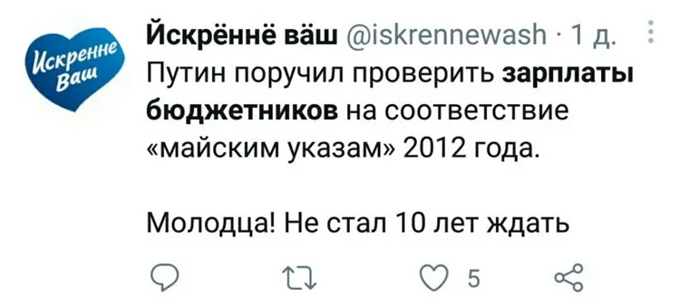 В социальных сетях активно обсуждают слова президента РФ Владимира Путина о необходимости проверить и отрегулировать зарплаты бюджетников после «майских указов». Одни посчитали, что теперь выплаты сократятся еще сильнее, другие не понимают, почему президент вспомнил это почти через 10 лет.