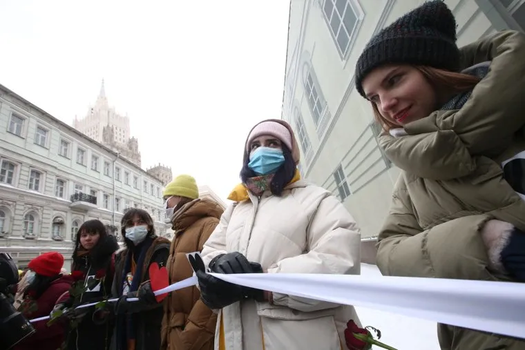 14 февраля по всей России прошли несогласованные акции. Днем женщины выстроились в «Цепь солидарности» в знак поддержки Юлии Навальной и политзаключенных. Вечером же россияне вышли во дворы и зажгли фонарики, чтобы поддержать блогера Алексея Навального.