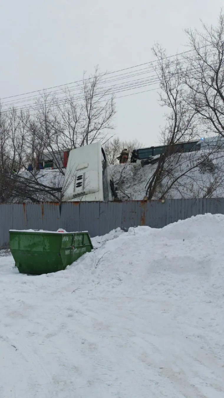 В Челябинске автобус столкнулся с трактором и упал с моста. Фото, видео