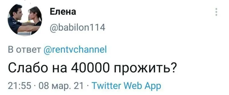 - Любовь10 марта 2021 23:33Оставить все чтоб он платил с 13 т р за все и чтоб осталось на бензин и в ресторан и на хлеб