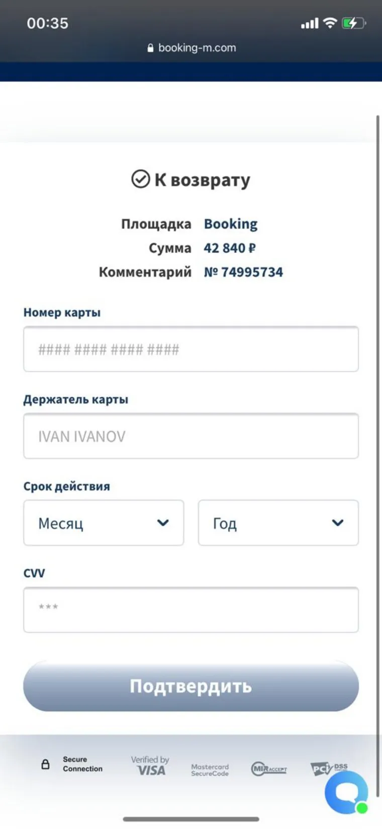 - Ольга29 июня 2021 13:39Один в один такая же ситуация произошла со мной! И вначале даже и мысли не возникло, что на Букинге могут быть мошенники!!! Так же, переводила в надежде вернуть средства, а в итоге еще больше списывали.