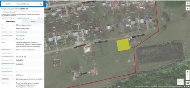 Зеленым цветом выделен участок супруги миасского мэра