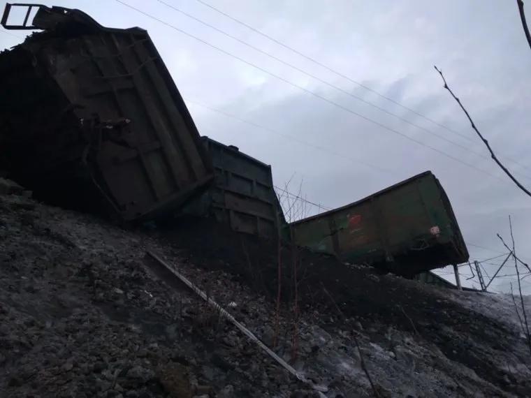 17 вагонов с углем лежат по разные стороны железнодорожного полотна