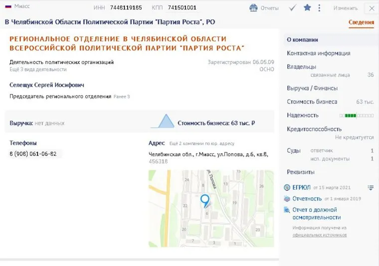 Ранее Партию Роста представляли в Челябинской области Андрей Некипелов, Юрий Зацепилин и — последние четыре года — предприниматель из Миасса Валихан Тургумбаев. Последний также был депутатом регионального парламента, но в августе прошлого года не смог переизбраться — суд снял его с выборов из-за уголовного дела о картельном сговоре.