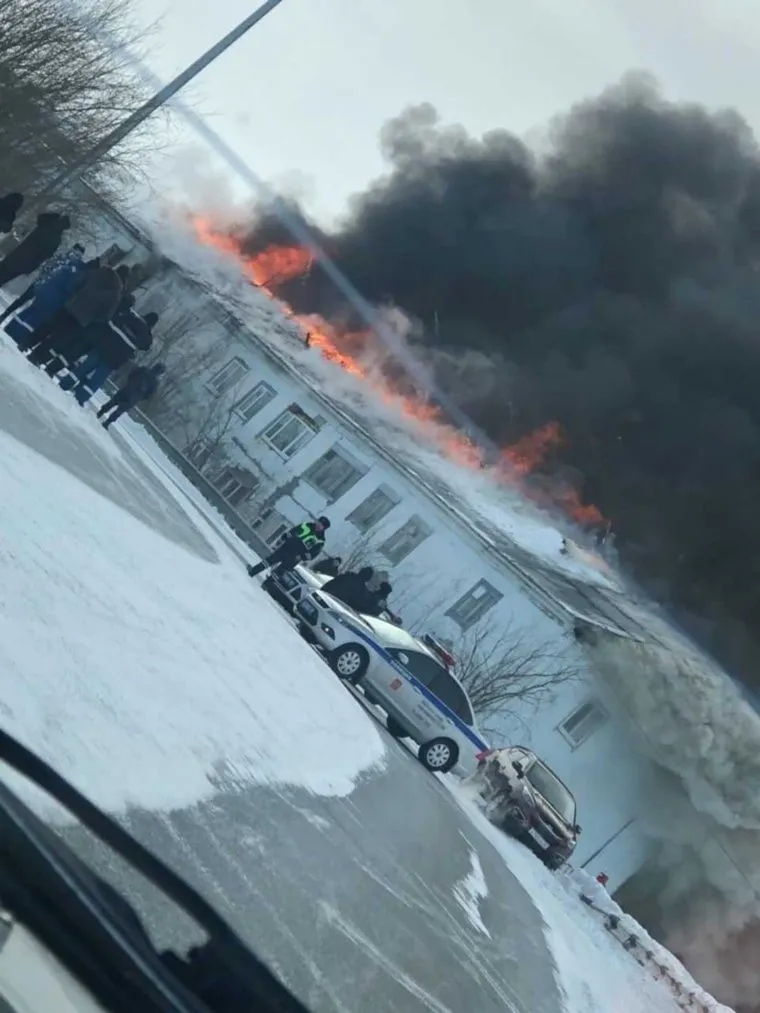 В столице ЯНАО горит многоквартирный дом. Фото