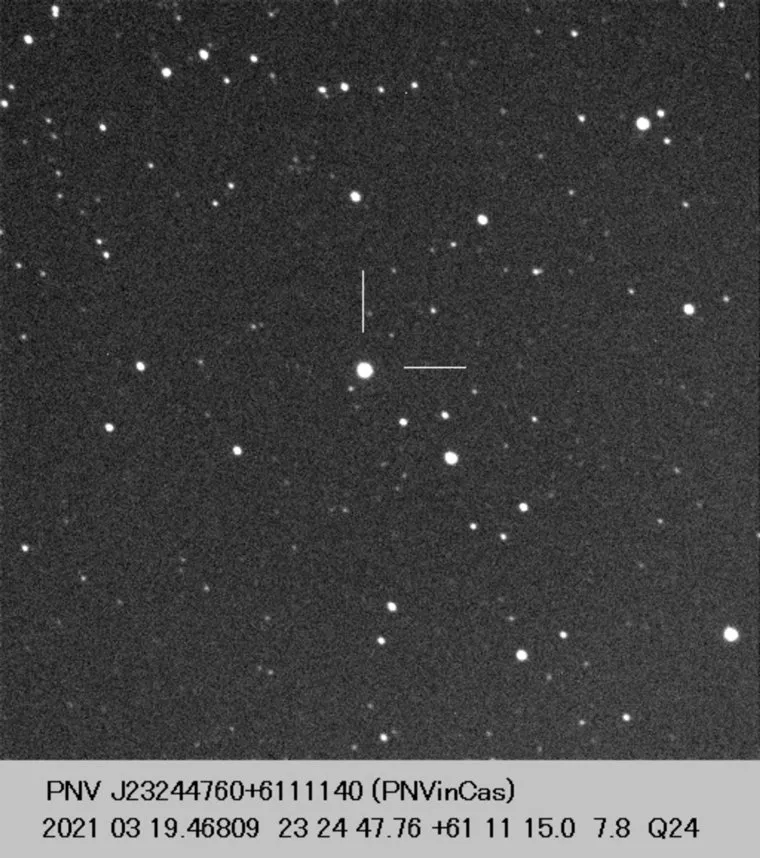 Звезду, появившуюся в созвездии Кассиопеи, обнаружил японский астроном Юдзи Накамура. Об этом сообщается на сайте Центрального бюро астрономических телеграмм.