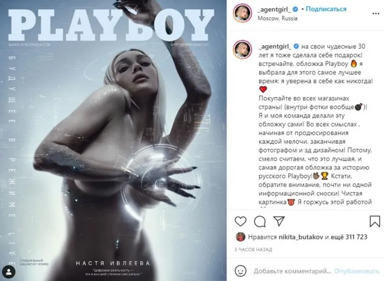 «На свои чудесные 30 лет я тоже сделала себе подарок! Встречайте, обложка Playboy. Выбрала для этого самое лучшее время. Я уверена в себе как никогда!», — написала Ивлеева. Блогер отметила, что делала обложку со своей командой самостоятельно и назвала ее самой дорогой «за историю русского Playboy».