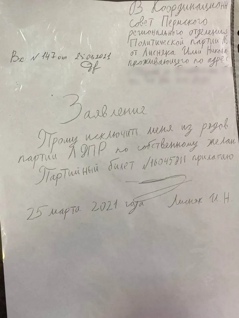Депутат гордумы Перми от ЛДПР Илья Лисняк заявил о выходе из партии