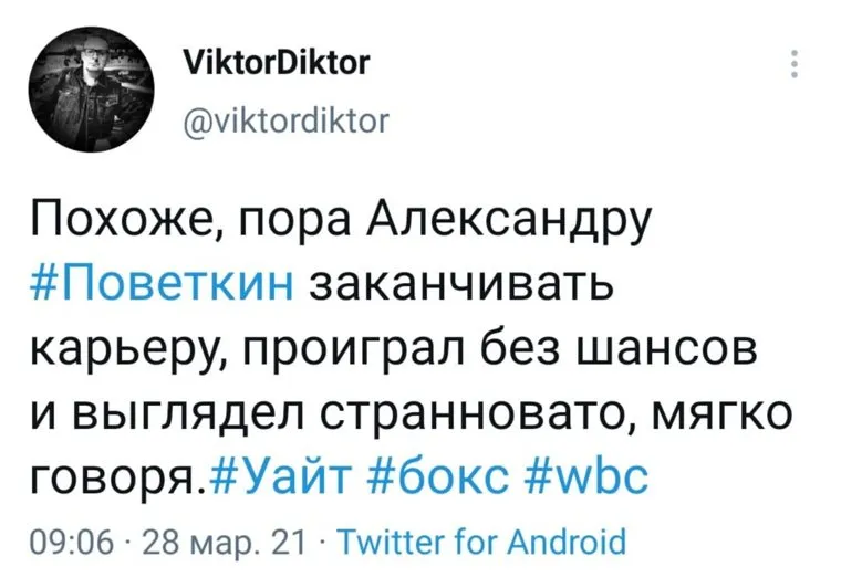 В социальных сетях не удивились тому, что российский боец в тяжелом весе Александр Поветкин проиграл британцу Диллиану Уайту. Пользователи начали издеваться над российским спортсменом.