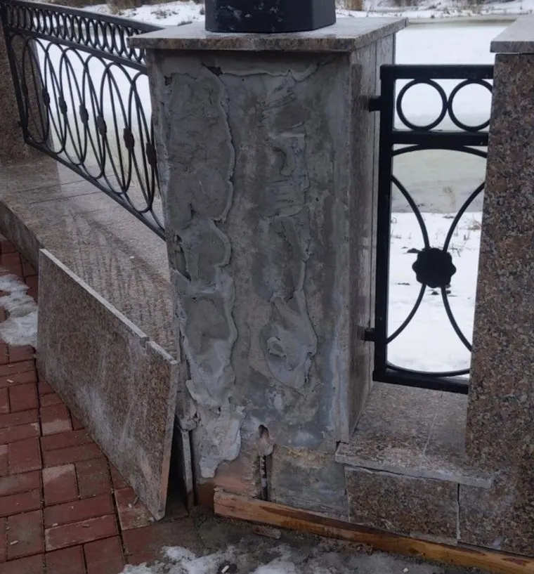На набережной в Шадринске (Курганская область) ротонду закрыли для людей. На новом объекте, который построили в 2020 году, лопнул гранит. Ранее на набережной отпала плитка . Об этом URA.RU рассказал житель Шадринска Леонид Коробицын.