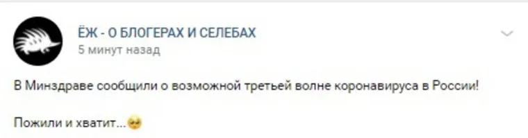 «В Минздраве сообщили о возможной третьей волне коронавируса в России! Пожили и хватит», — пишет один из пользователей, снабдив свою запись грустным смайликом. В основном в соцсетях к словам Семеновой относятся скептически и указывают на динамику заболеваемости вирусом. Сама Семенова ранее заявила, что в пользу ее версии о третьей волне говорят среднесуточные показатели заболеваемости.