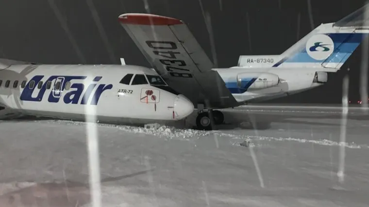 Самолет ATR-72 выкатился за полосу и столкнулся с Як-40