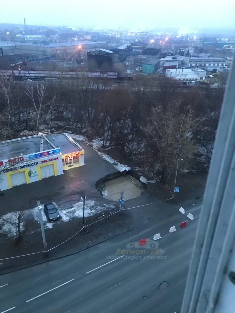В Челябинске перекрыли дорогу из-за огромного провала в асфальте. Фото