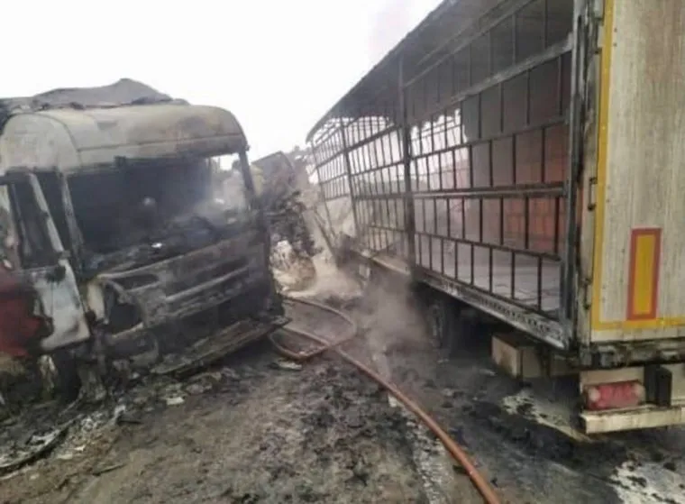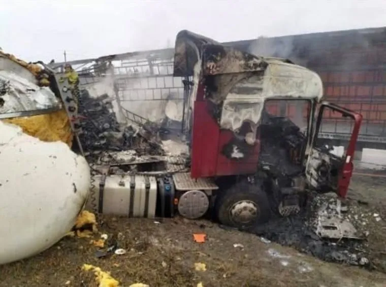 На челябинской трассе столкнулись и сгорели две фуры. Фото, видео
