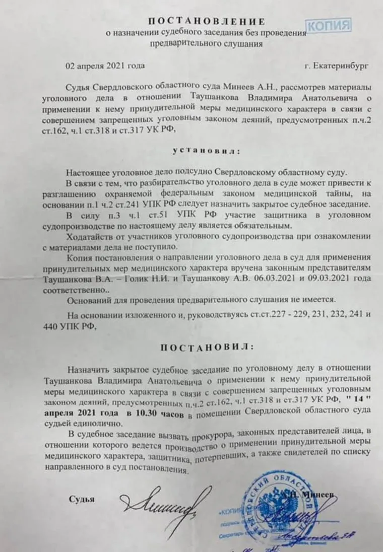 Убитого СОБРом екатеринбуржца Владимира Таушанкова будут судить за разбойное нападение. Как сообщил адвокат семьи Таушанковых Алексей Бушмаков, процесс будет происходить в закрытом режиме.
