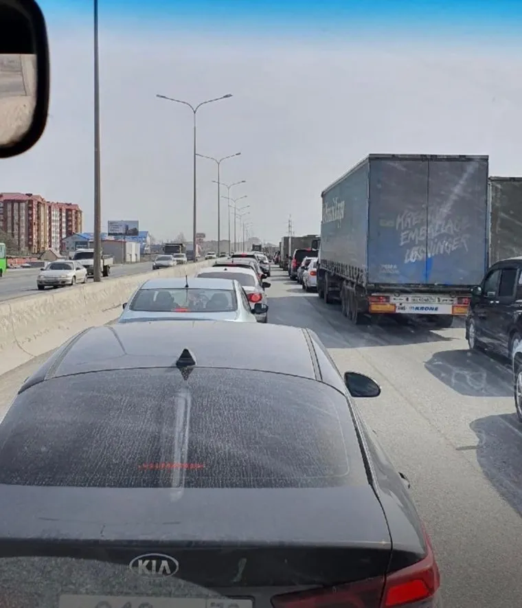 В Тюмени образовалась многокилометровая пробка. Фото