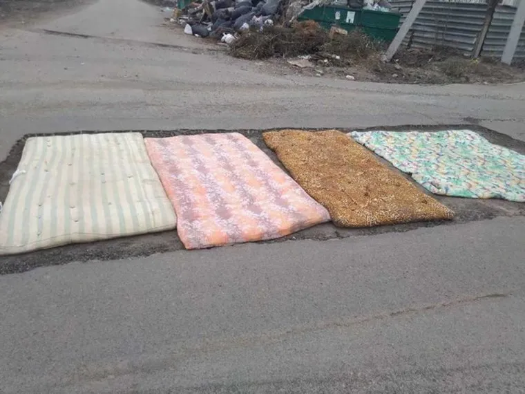 Под Челябинском дорогу отремонтировали матрасами. Фото