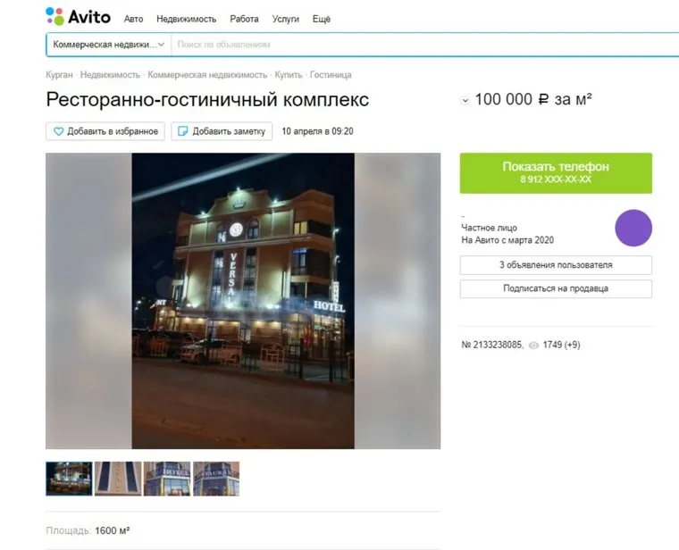Курганский предприниматель Сафа Нифтуллаев выставил на продажу гостиницу «Версаль». Она начала работать в 2019 году. Информация о продаже появилась на сайте Avito.