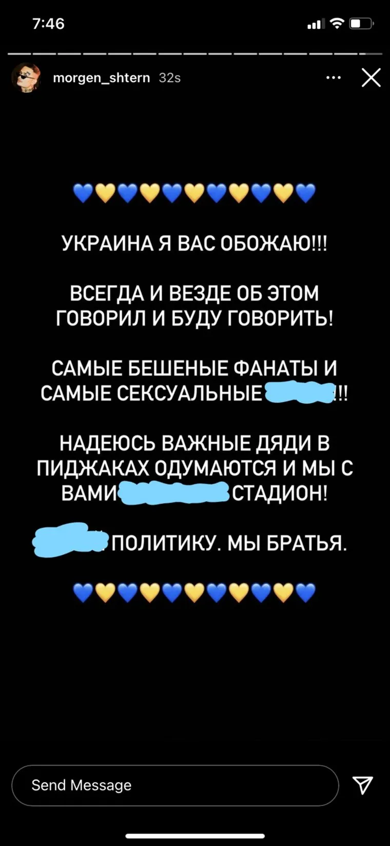 Моргенштерн признался в любви к жителям Украины в storis в Instagram (деятельность запрещена в РФ)