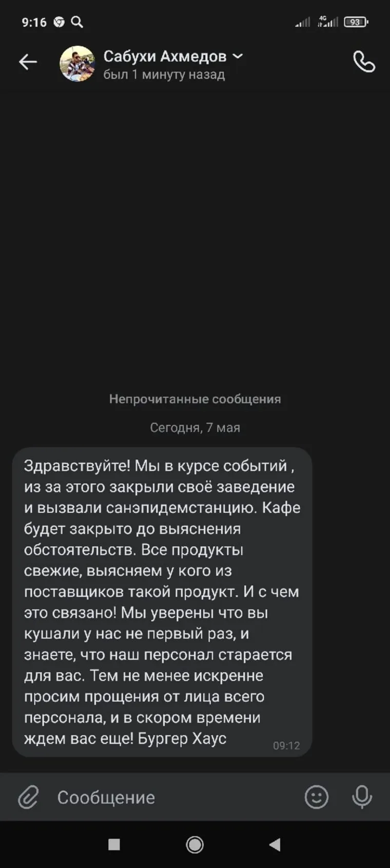- Пресс-служба Администрации города07 мая 2021 23:25Здравствуйте, уважаемые земляки, ямальцы! Кафе [l_vchk]Бургер Хаус[r_vchk] - частное предприятие, тем не менее, Управление Роспотребнадзора по Ямало-Ненецкому автономному округу, прокуратура города, Администрация города Лабытнанги обладают полной информацией об инциденте. По факту отравления горожан в кафе проводится проверка. Частное учреждение общественного питания закрыто. По результатам проверки в отношении собственника кафе будут приняты исчерпывающие меры административного реагирования. Врачами Лабытнангской больницы проводится лечение всех горожан, кто обратился за помощью. Необходимые лекарства имеются в достаточном количестве. Желаем землякам скорейшего выздоровления. Обязательно проинформируем жителей о результатах проверки.