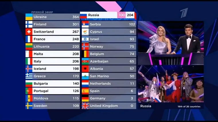 В ходе первого тура голосования Россия получила 12 баллов (высшую оценку) от профессионального жюри Азербайджана, по 10 баллов от Молдовы, Франции и Португалии, восемь баллов от жюри Словении и Нидерландов, семь баллов от Бельгии, шесть баллов от Кипра, четыре балла от Финляндии и Хорватии, три балла от Швеции и Швейцарии, по два балла от Греции, Чехии, Исландии и Германии, по одному баллу от Латвии, Австралии и Северной Македонии. Российское жюри отдало 12 баллов Наталье Гордиенко, представляющей на конкурсе Молдавию. Песню для нее написал Филипп Киркоров, он же выступил продюсером Гордиенко. По итогам первого тура Россия заняла восьмое место.