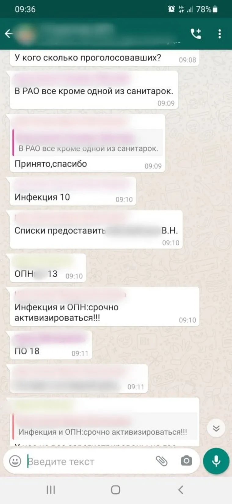 «Мне пришла очередная жалоба на то, что людей принуждают голосовать за определенных лиц. Просят отправить скрины того, что ты проголосовал и подать списки. Школы, больницы, учреждения культуры и спортивные организации. По предприятиям сказать точно не смогу, но думаю, что ситуация там не лучше», — рассказал Чижов. По его словам, случаи принуждения зафиксированы в отделении патологии новорожденных и реанимационно-анестезиологическом отделении Первоуральской городской больницы.