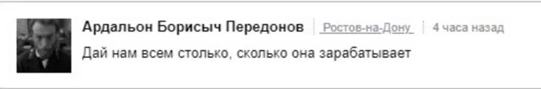 Комментатор по имени Ардальон позавидовал доходу певицы