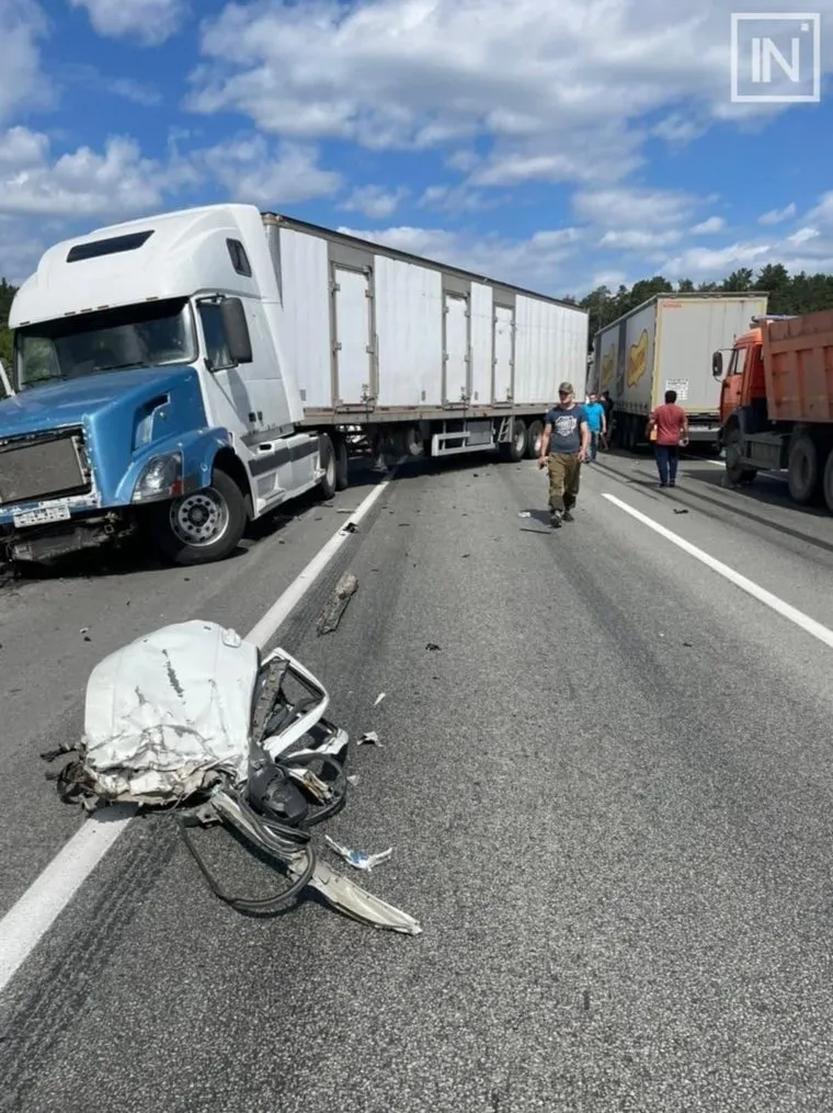 Под Екатеринбургом фура смяла легковой автомобиль. Фото
