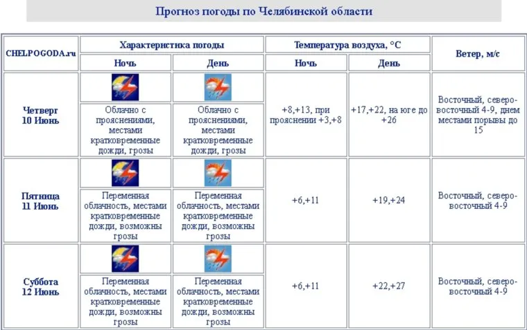 Столицу региона непогода обойдет стороной. После слабого дождя в четверг в Челябинске и его окрестностях осадки не прогнозируются. Столбик термометра днем 10, 11 и 12 июня будет держаться на отметке 20—24 градуса. Дискомфорт будет доставлять лишь относительно сильный — до 9 метров в секунду — ветер.