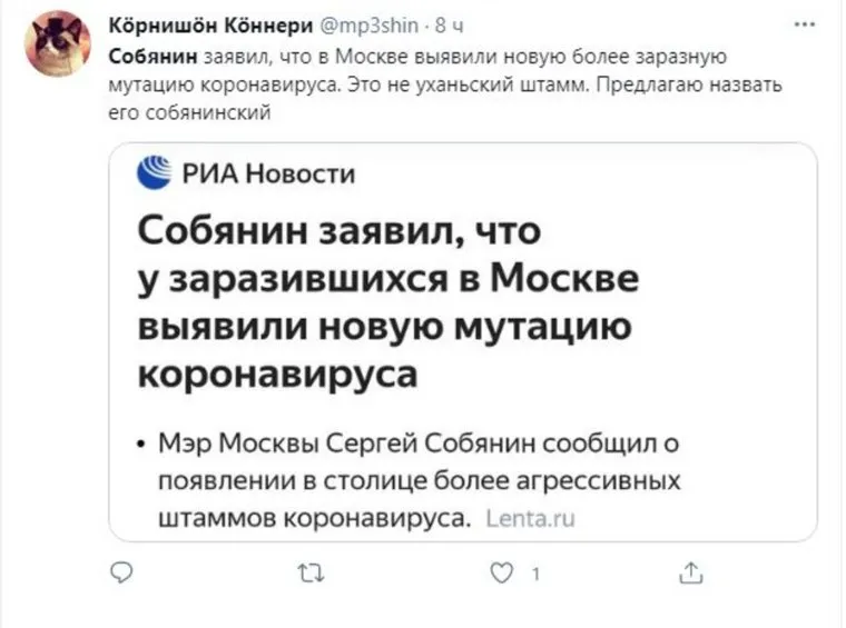 Собянин отметил, что сейчас москвичи сталкиваются с новыми, более агрессивными и заразными штаммами коронавируса, сообщает телеканал 360 . Пользователи соцсетей сразу же придумала название новым мутациям COVID-19.