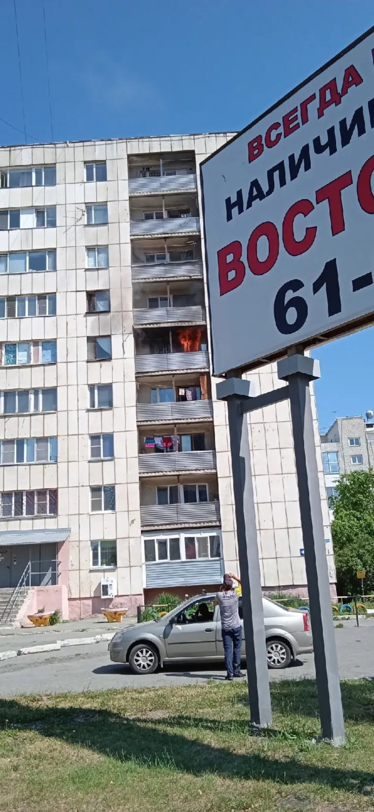 На кадрах видео, размещенных под постом, снято, как полыхает огонь. Пламя охватило квартиру и балкон.