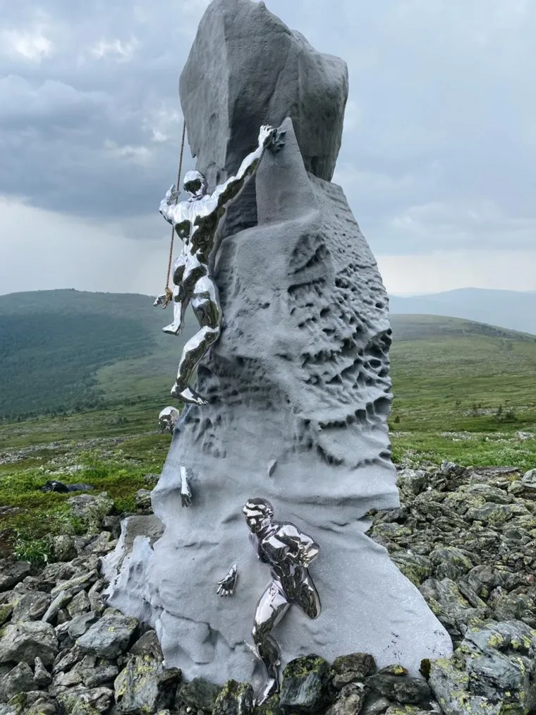 Четырехметровая скульптура в память о погибших советских студентах была установлена на перевале Дятлова 30 июня