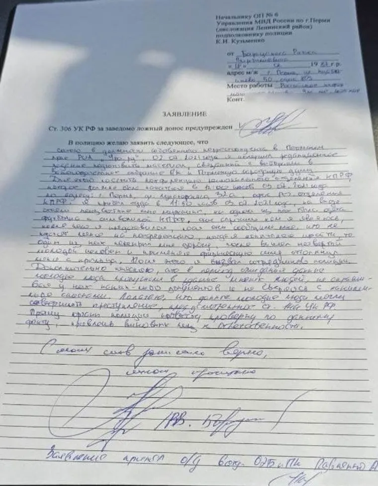 Журналист URA.RU написал заявление в полицию на КПРФ