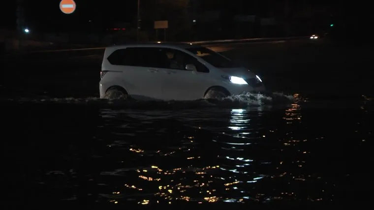 Автомобиль с трудом передвигается по воде.