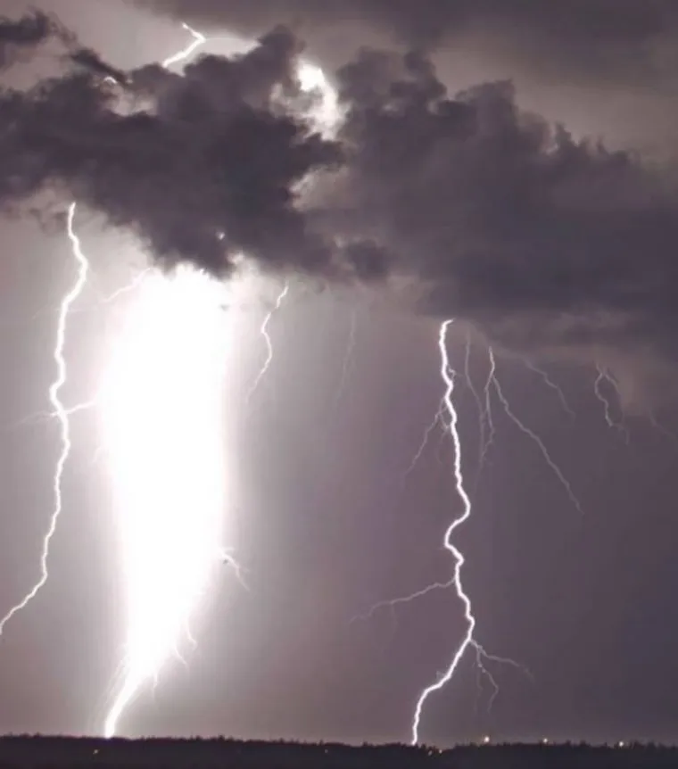 На снимке видно, как мощные молнии ударяют о землю совсем близко.