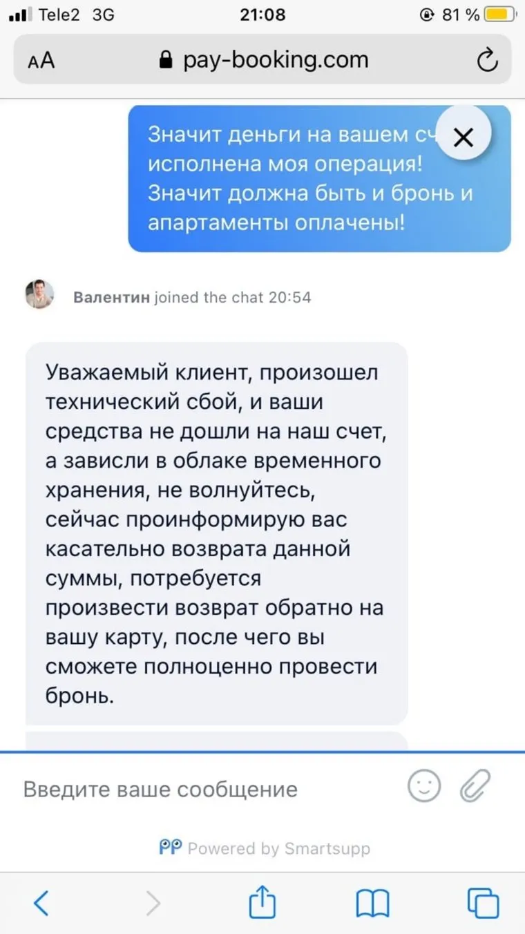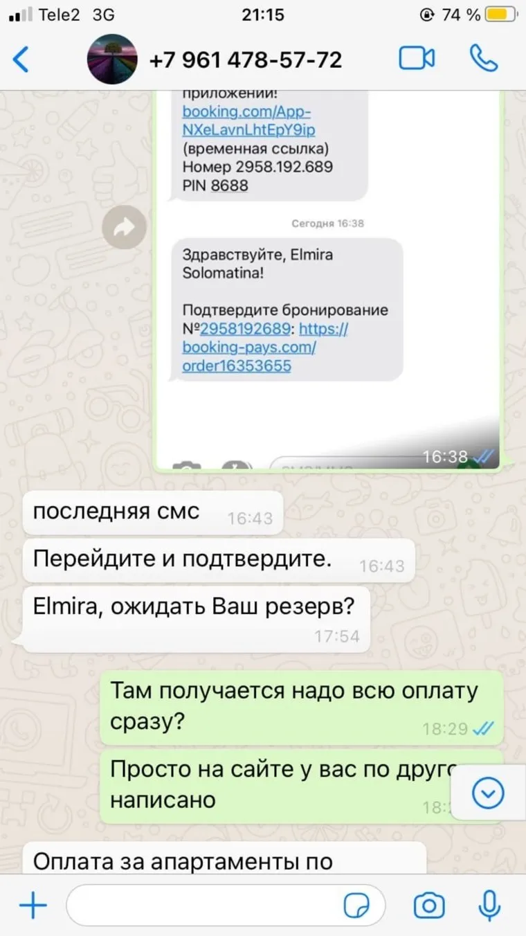 «Со мной через WhatsApp связался сотрудник (как я поняла) этих апартаментов. Он объяснил, что нужно подтвердить бронь и перейти по ссылке. Я все сделала, деньги ушли. Через минуту приходит смс, в котором говорилось о сбое бронирования. Я написала в службу поддержки, и тут началось все самое интересное: для возврата денег нужно было пополнить [банковскую] карту. Я пополнила, и тут снова снимают все деньги. В итоге я попала на 40 тысяч рублей», — призналась девушка.
